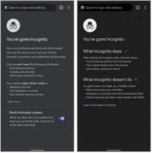В новой версии, Google больше четко разъясняет «Что делает Инкогнито» и «Что Секретно не делает». Интересно, почто в новом дизайне был удален селектор для блокировки сторонних файлов cookie.