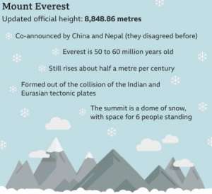 Ученые из Непала, (насу)против, посчитали снежную верхушку важной в известной степени Джомолунгмы. По их версии, возвышенность горы составляла 8 848 метра.